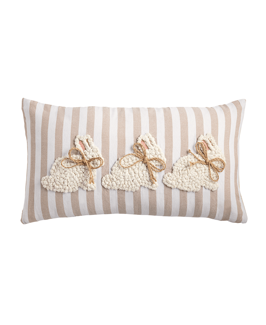 Refresh your space for spring with the Lumbar White Easter Pillow, a beautifully embroidered accent that blends seasonal charm with timeless elegance. Designed with bunnies and an intricate embroidered stripe detail on the front, this pillow adds subtle texture and sophistication to your Easter décor and beyond.The solid canvas backing provides durability and structure, while the lumbar shape offers supportive comfort for sofas, beds, or accent chairs. Finished with a zipper closure for easy removal and care, this pillow is as practical as it is polished.