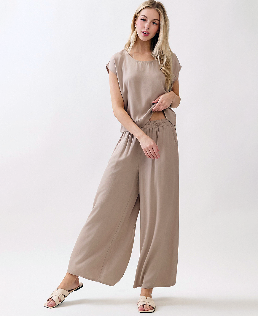 Effortlessly chic and endlessly versatile, the Annalee Wide Leg Pants are the perfect complement to your everyday wardrobe. Designed with a relaxed pull-on silhouette and a breezy wide leg, these pants offer comfort without sacrificing style. The lightweight woven rayon fabric drapes beautifully for a polished, elevated look that transitions seamlessly from day to night. Pair them with the matching Annalee Woven Boxy Top (sold separately) for a coordinated ensemble, or style with a simple cami or tee for easy, refined layering.