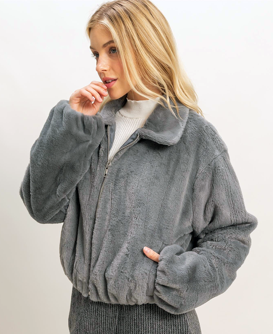 Laurel Faux Fur Jacket – Gray