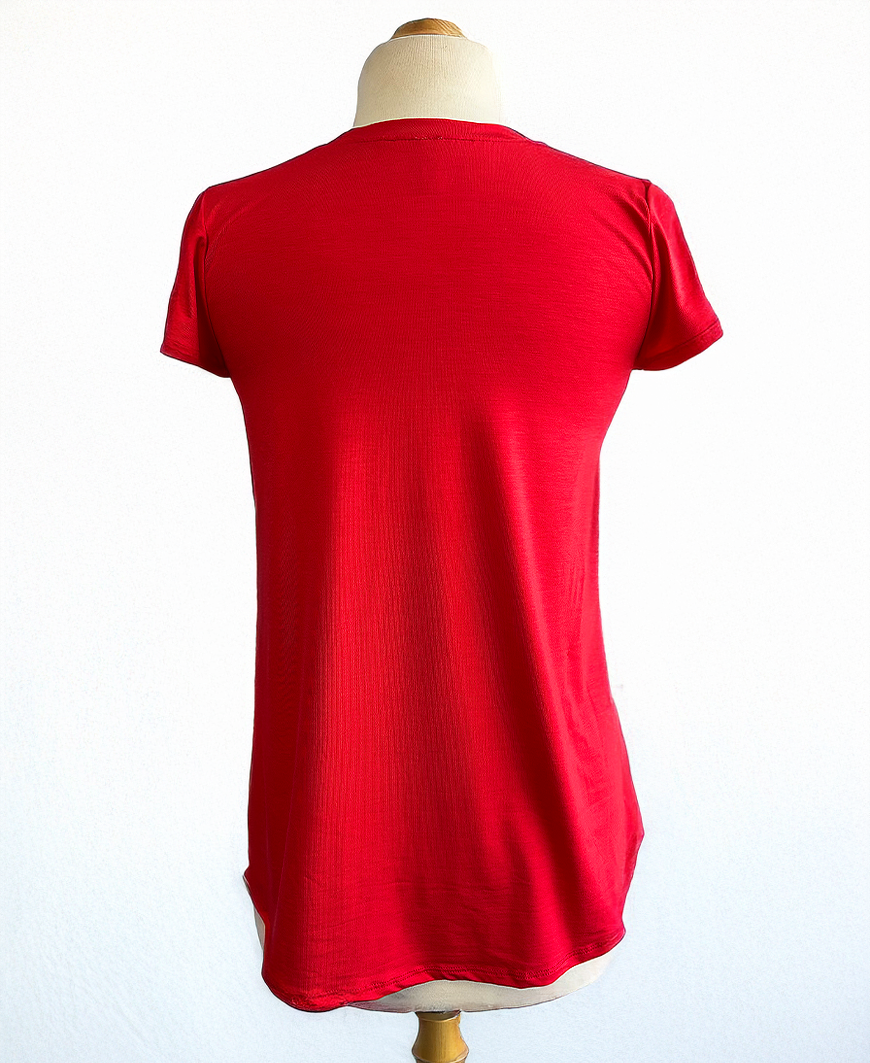 Made in the USA, this everyday-comfy tee pairs beautifully with leggings, jeans, or joggers for a cute and casual Christmas look. Festive, flattering, and oh-so-merry!