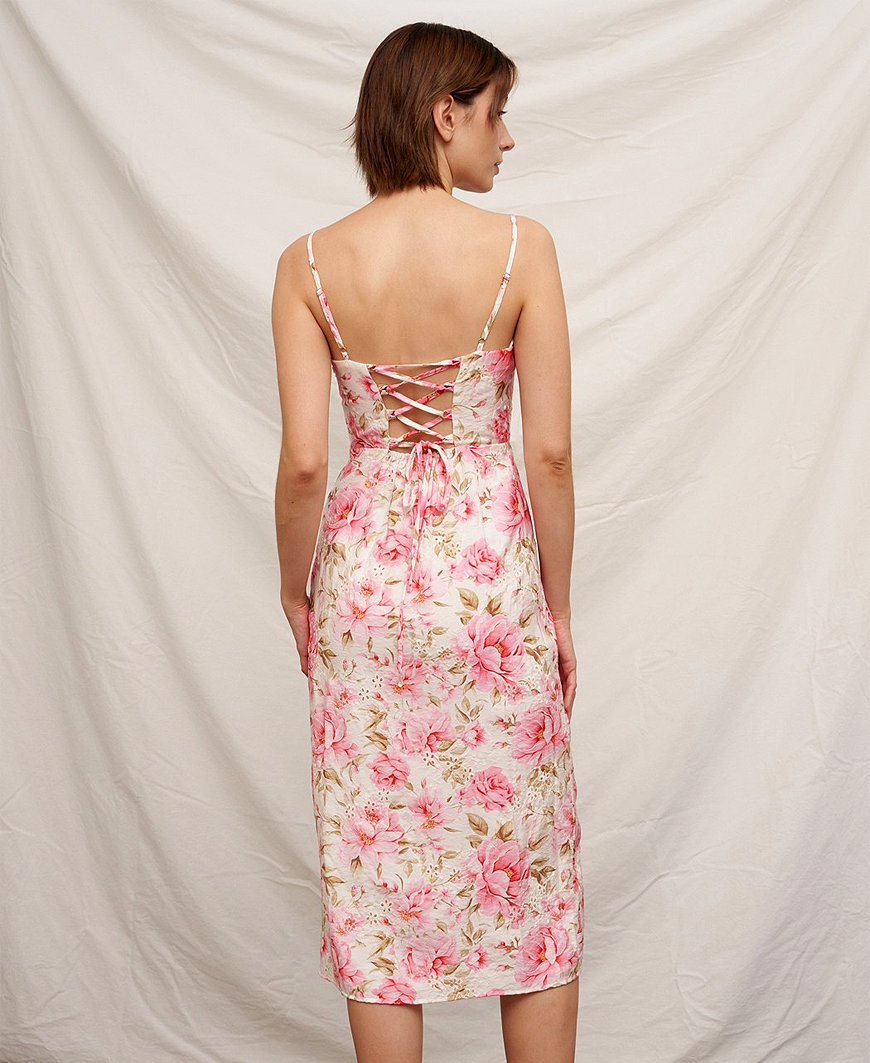 Beckett Floral Lace-Up Midi Dress – Ivory Multi
