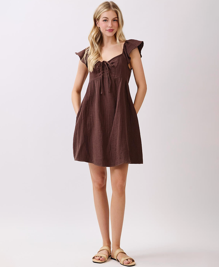 Sweet with a hint of charm, the Loyal Babydoll Dress features soft ruffled cap sleeves and a delicate tie detail that adds an effortlessly feminine touch. Designed with a relaxed A-line babydoll silhouette, this dress offers a flattering, easy fit that’s perfect for everyday wear. Crafted from breathable cotton, it’s lightweight and comfortable—ideal for warm days when you want to look put-together with minimal effort. Style it with sandals for a casual look or dress it up with boots and accessories for a cozy, elevated vibe.
