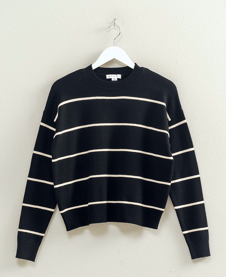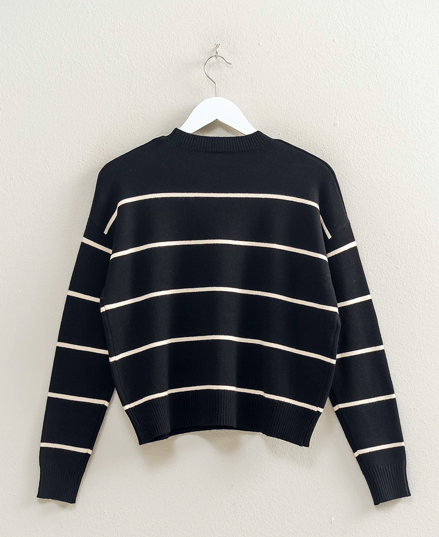 Timeless and effortlessly chic, the Bethany Striped Sweater from Daisy Shoppe is a must-have staple for any wardrobe. Designed with classic black and cream stripes, this sweater features a crew neckline, long sleeves, and a structured silhouette that flatters every shape. Its soft, medium-weight knit offers all-day comfort while maintaining a polished look. Perfect for work, weekends, or a cozy night out — simply layer it over a collared blouse or pair it with denim for an easy elevated outfit.