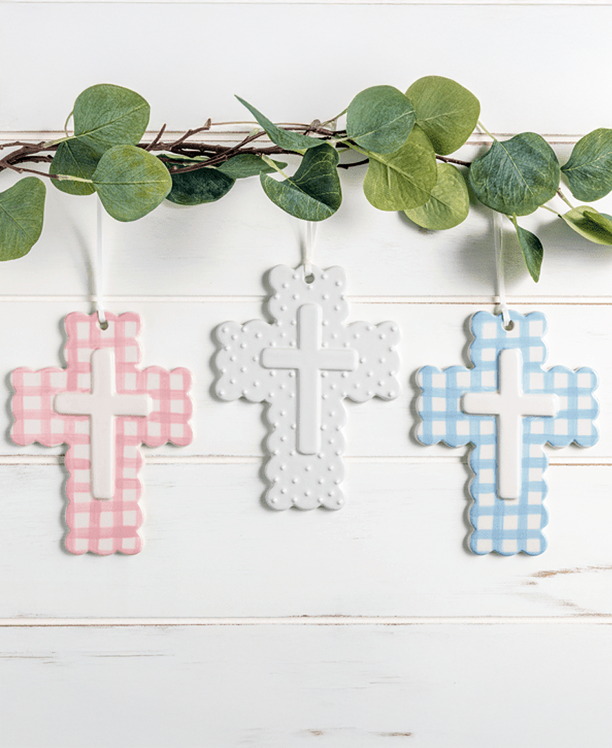 Gingham Ceramic Crosses – Assorted Colors