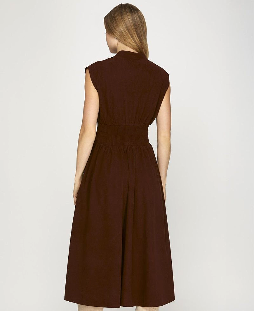 Regular price $79.00 Sale price $68.99Leslie Front Zip Corduroy Midi Dress β Brown