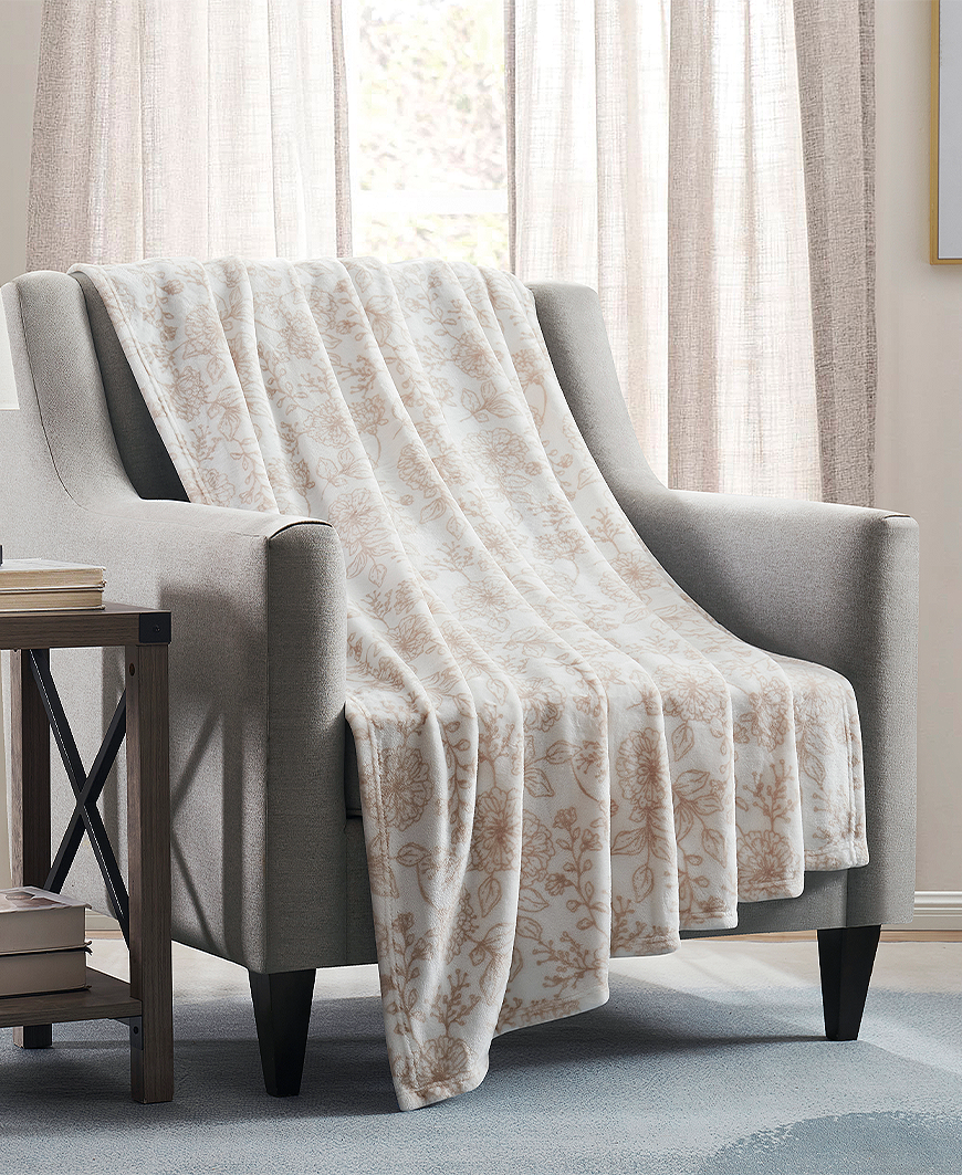 Add a touch of timeless charm to your home with the Floral Print Blanket in Taupe. Featuring a delicate floral pattern on a soft white background, this luxuriously plush throw brings both comfort and elegance to any space. Perfect for curling up with a good book or adding a fresh accent to your bed or sofa, its classic design and irresistibly soft feel make it a cozy favorite year-round.