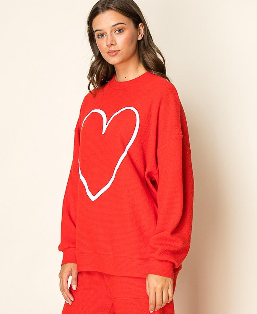 Heart Outline Cloudy Crewneck – Red