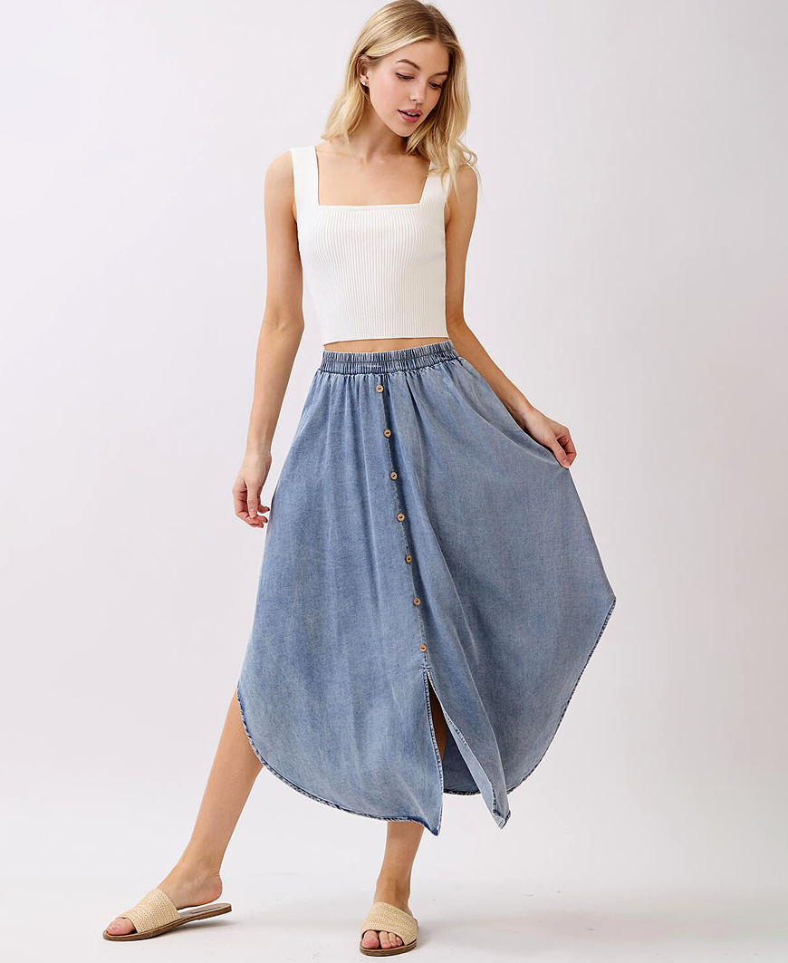 Aislinn Mineral Wash Midi Skirt – Medium Wash