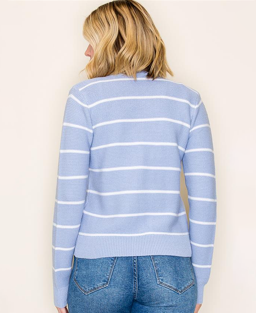 Ariane Bow Stripe Cardigan – Light Blue / Ivory