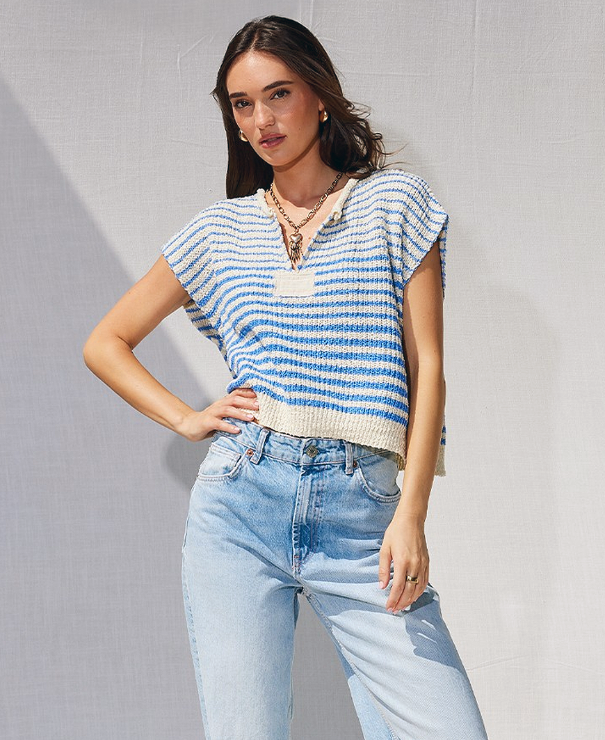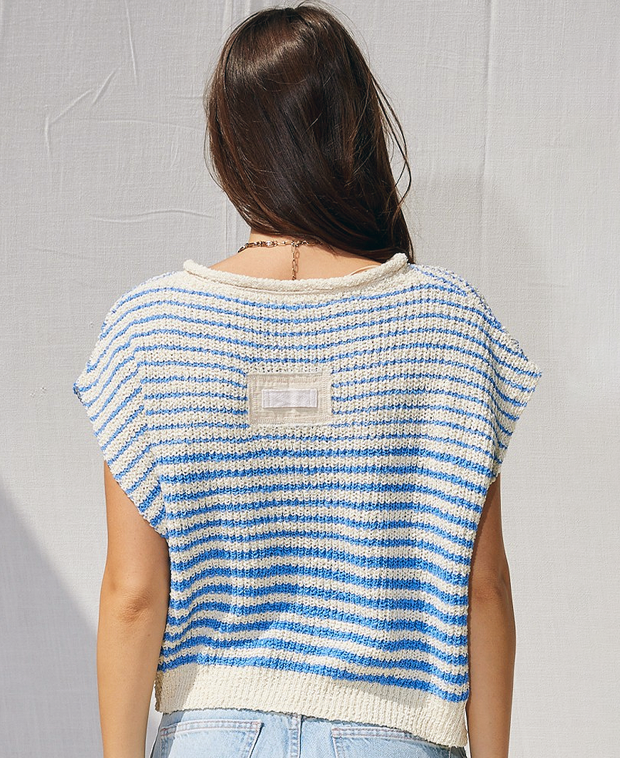 Auden Stripe Sleeveless Sweater – Ecru/Blue
