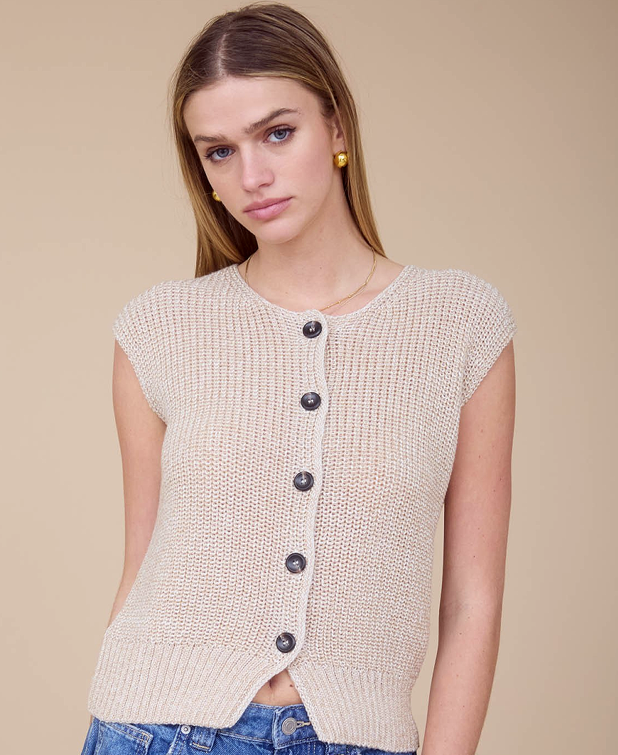 The Indiana Marled Sweater Vest is a modern layering essential with timeless appeal. Crafted in a soft marled knit, this sleeveless sweater vest features a classic round neckline and a button-down front for versatile styling. The lightweight knit makes it perfect for wearing on its own or layered over tees, blouses, or dresses for an effortlessly polished look. Ideal for transitional seasons, this sweater vest blends comfort and style for easy everyday wear.