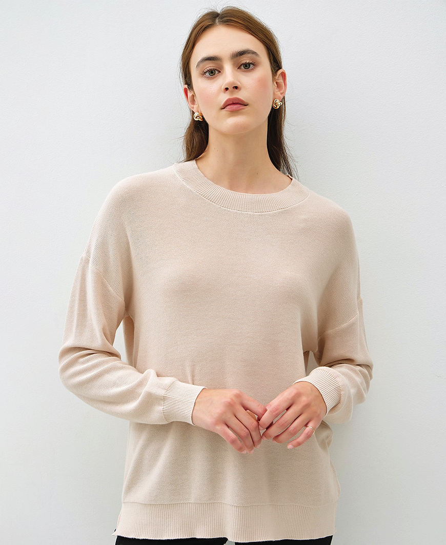 Cozy meets effortlessly chic with the Saffron Drop Shoulder Sweater in cream. Designed with a soft-touch feel and a relaxed, slightly oversized fit, this lightweight sweater top features a classic round neckline and drop shoulder seams for that perfectly laid-back silhouette. Crafted from a cotton-blend knit, the Saffron Sweater Top is breathable yet cozy—ideal for layering or wearing on its own during transitional seasons. Easy to style with denim, skirts, or lounge bottoms, this versatile piece is a go-to for everyday comfort with an elevated look.