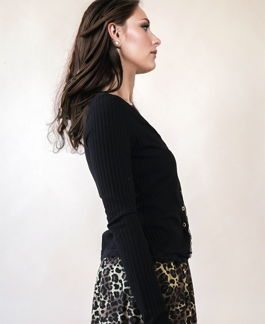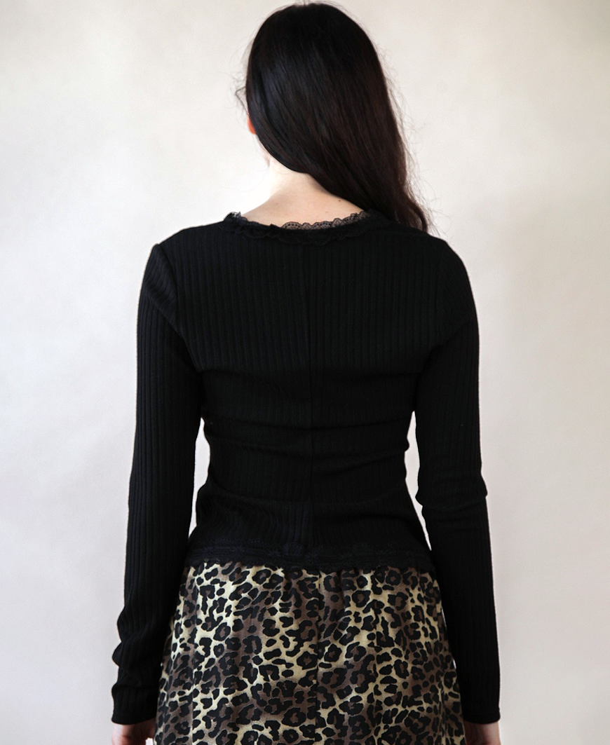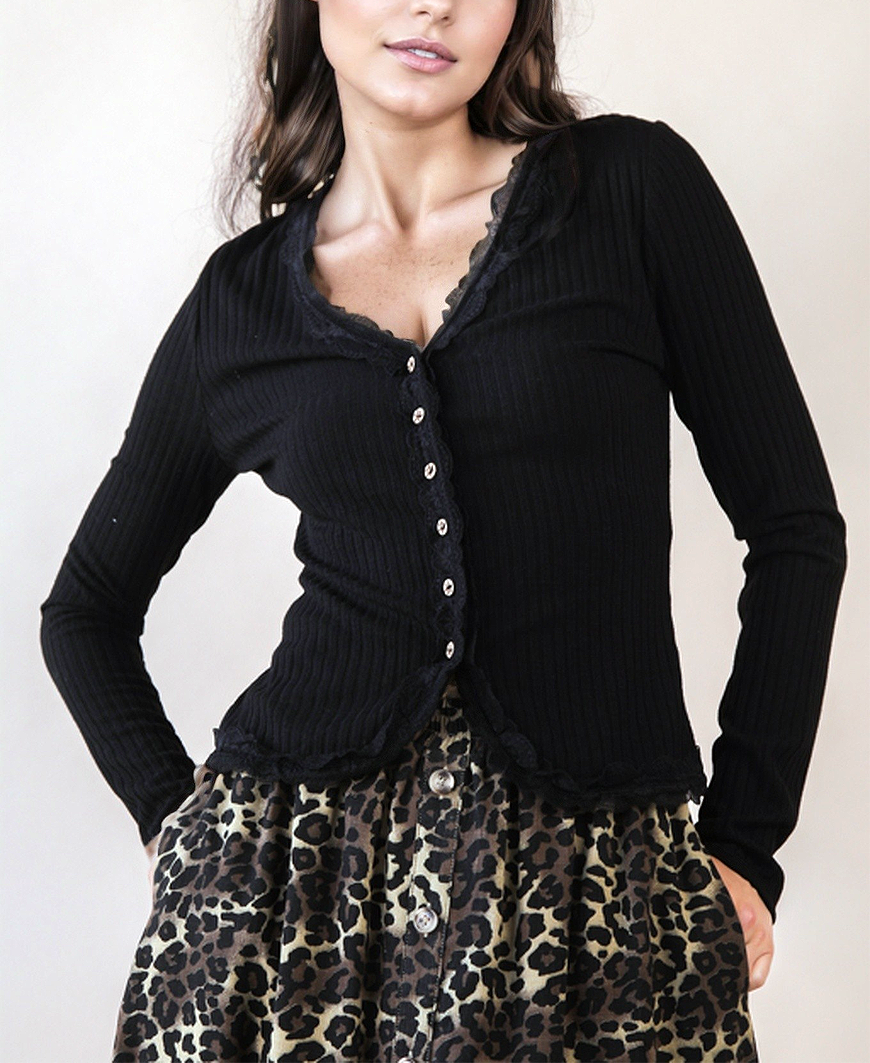 Chic and timeless, the Bristol Lace Trim Top is your new go-to for elevated everyday style. Designed with a flattering deep V-neckline and delicate lace trim, this fitted knit adds the perfect touch of romance to your wardrobe. The soft, stretchy knit fabric hugs in all the right places, while button-down detailing keeps the look effortlessly polished.