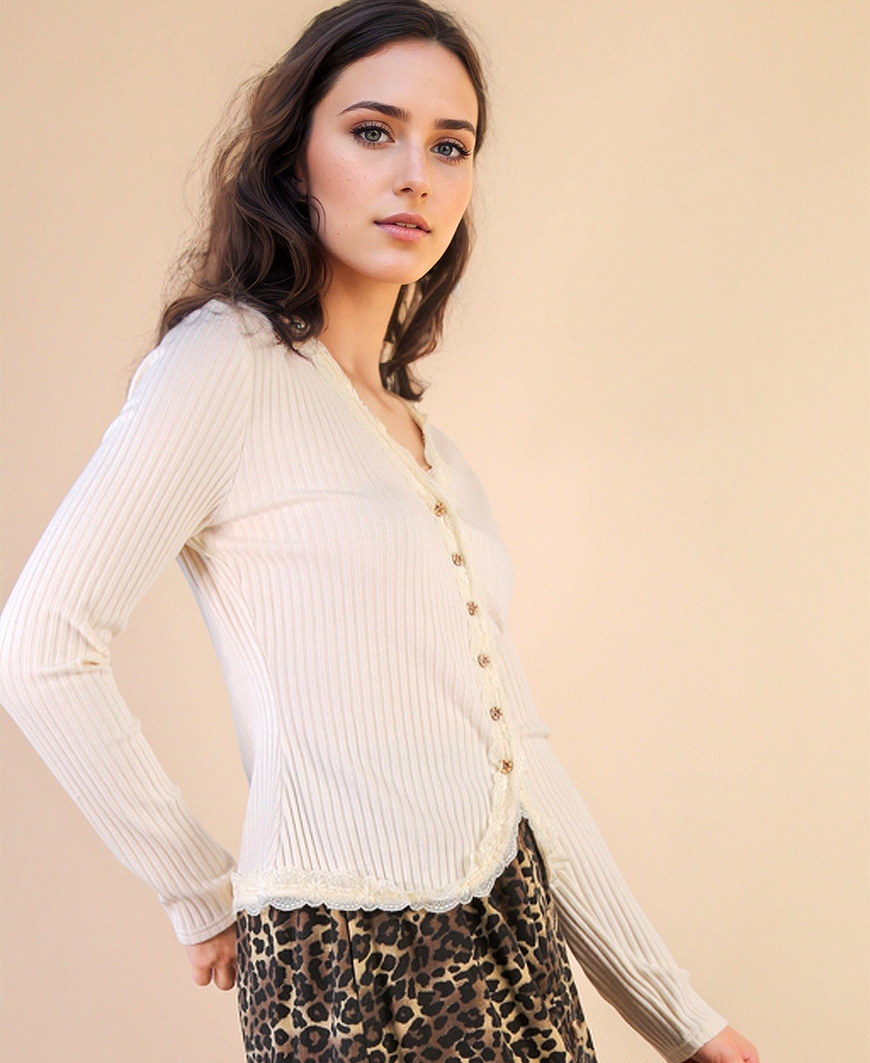 Chic and timeless, the Bristol Lace Trim Top is your new go-to for elevated everyday style. Designed with a flattering deep V-neckline and delicate lace trim, this fitted knit adds the perfect touch of romance to your wardrobe. The soft, stretchy knit fabric hugs in all the right places, while button-down detailing keeps the look effortlessly polished.