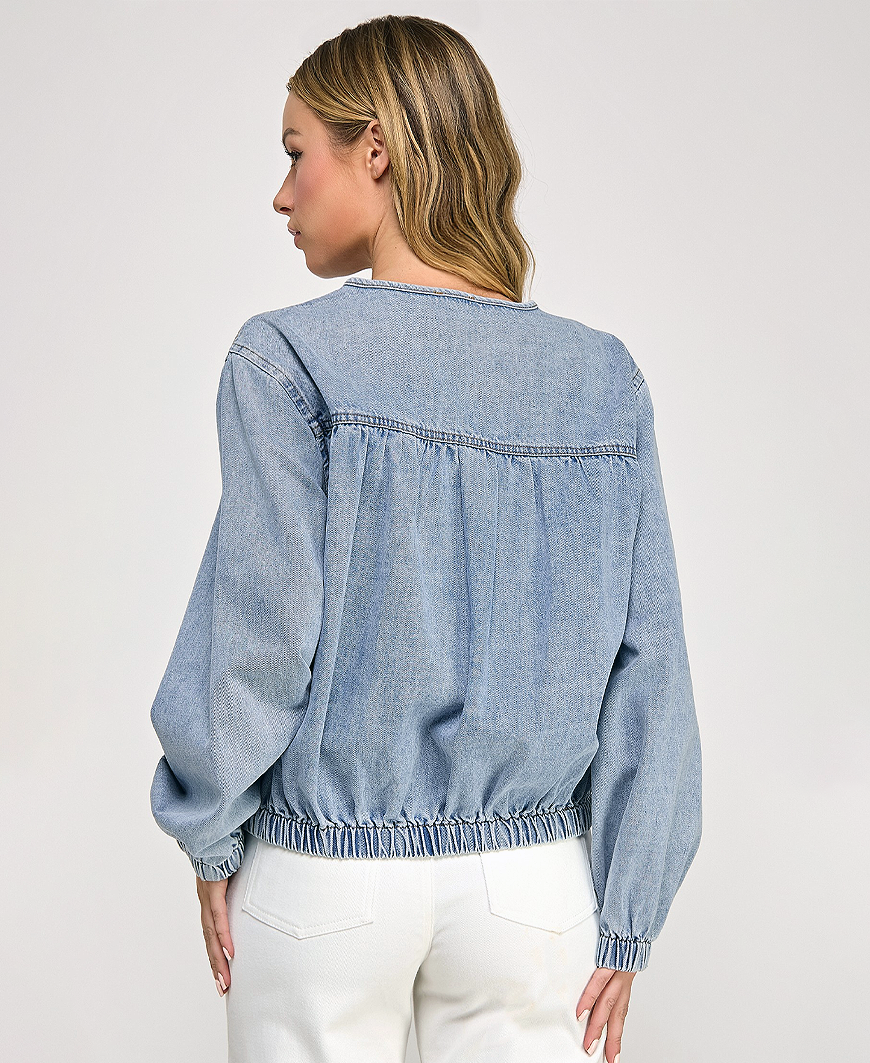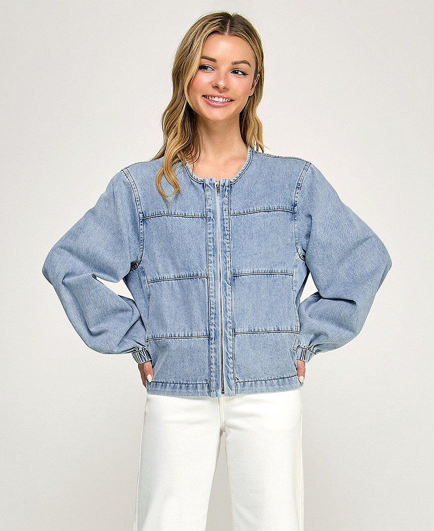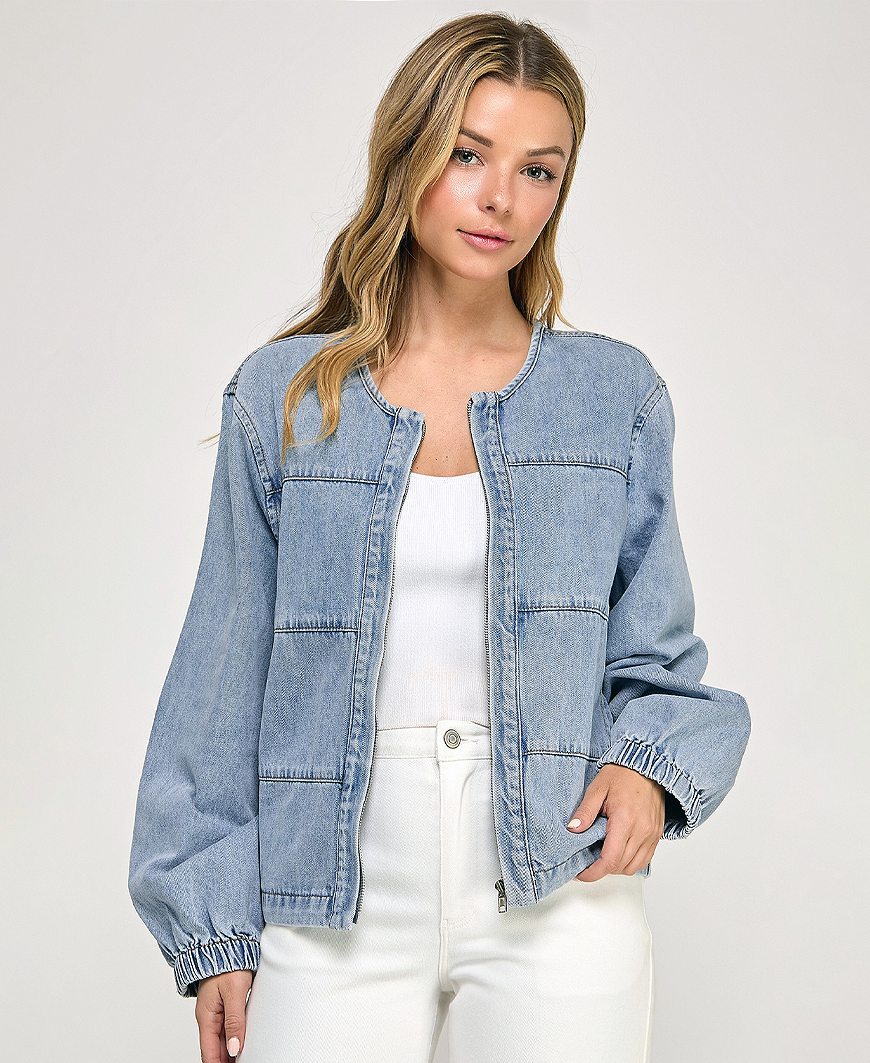 Effortlessly cool with a modern edge, the Coleen Zip Up Jacket in light denim is the perfect lightweight layer for everyday wear. Designed with a subtle layered pattern, this jacket adds texture and visual interest while keeping a clean, classic denim look. Featuring a front zipper closure for easy styling and elastic detailing at the waist and wrists, it offers a flattering, comfortable fit with just the right amount of structure. Made from 100% cotton, the Coleen Jacket is breathable and durable—ideal for layering over tees, tanks, or dresses throughout the season.