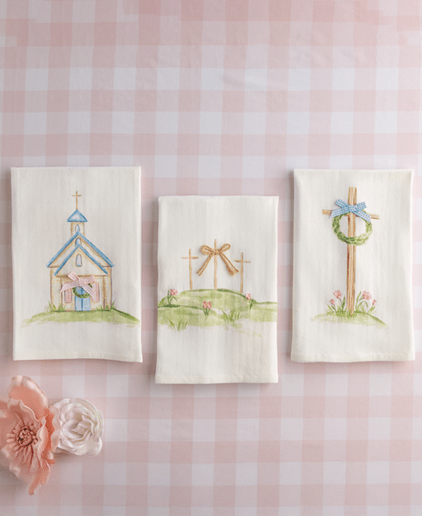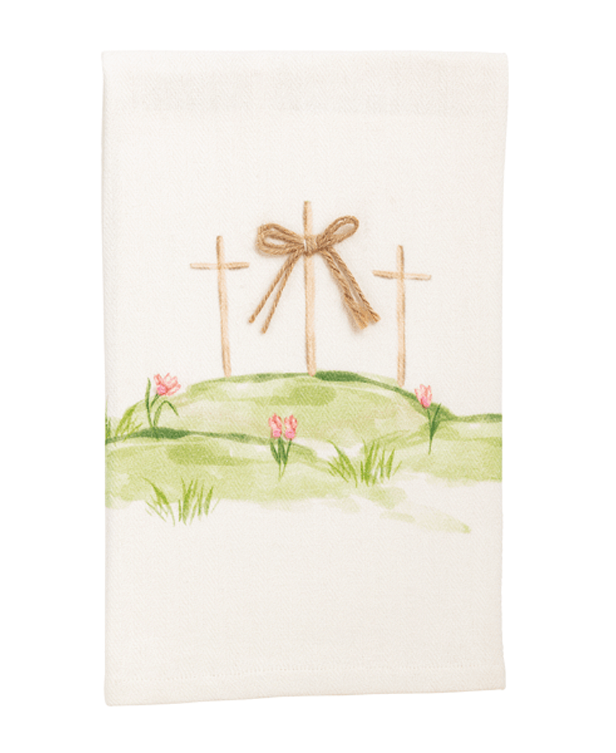 Bring a touch of faith and festive charm to your home this season with the Easter Cross Towels. Crafted from 100% woven cotton, each towel features a soft, absorbent texture and dimensional accents — from delicate grosgrain bows to rustic twine details — for a beautifully layered, seasonal look. Available in three unique styles, including classic crosses, wreath-accented crosses, and the iconic three crosses design, these towels add a thoughtful, decorative touch to kitchens, bathrooms, or entryway displays. Measuring 26" x 16 1/2", they’re perfectly sized for everyday use or seasonal decor.