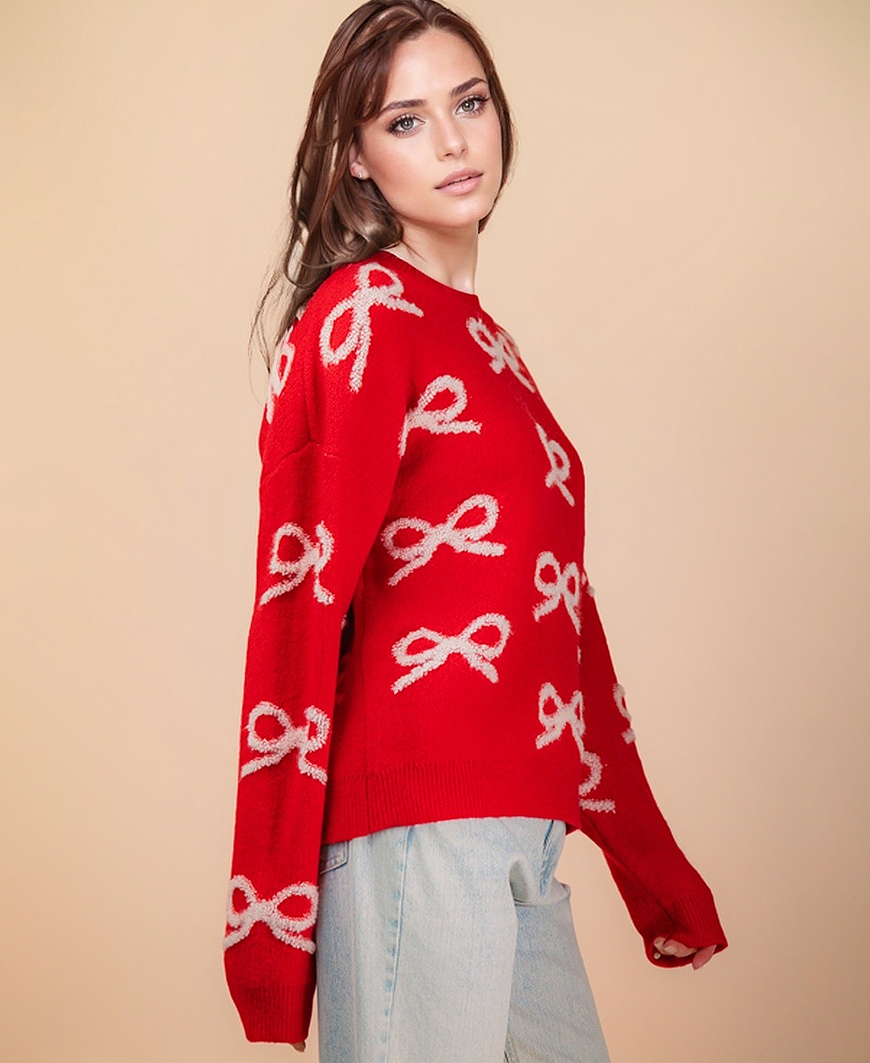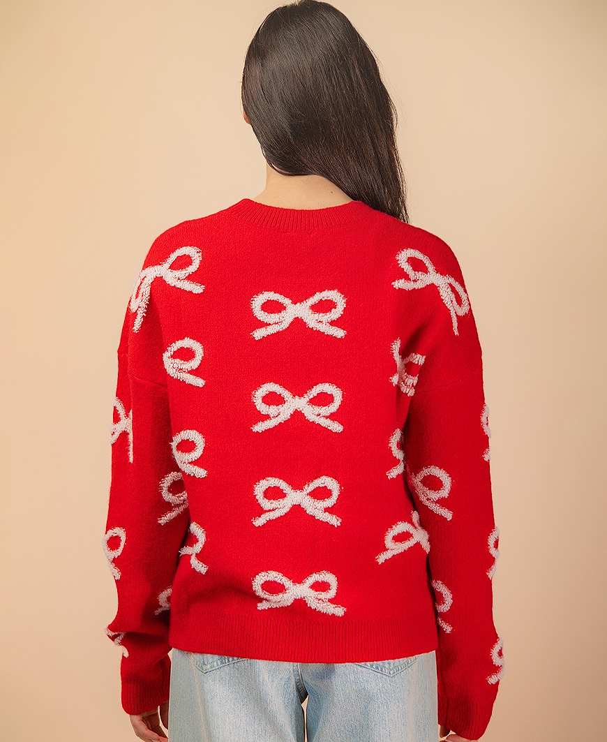 Regular price $49.00Holly Bow Knit Sweater – Red