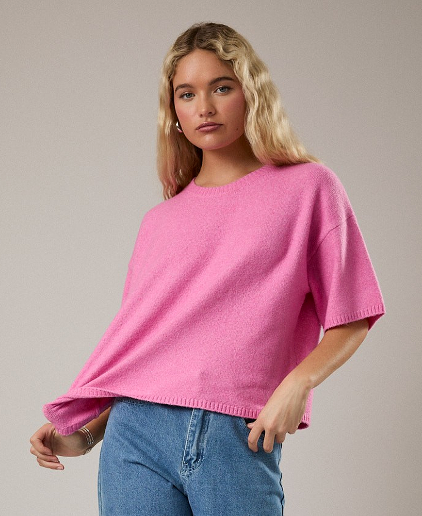 Janelle Short Sleeve Sweater – Pink