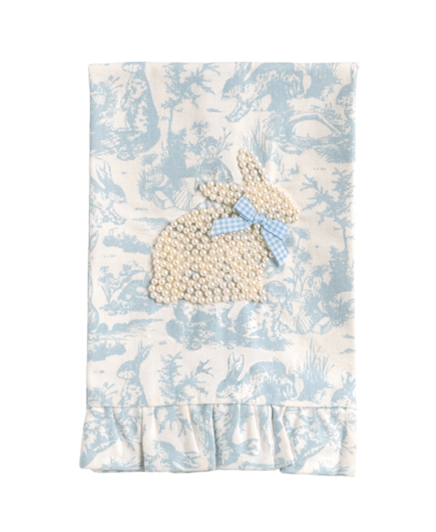 Add a whimsical and elegant touch to your home with the Toile Bunny Pearl Towels, available in soft Blue or charming Pink. Crafted from 100% high-quality cotton, these hand towels are luxuriously soft, absorbent, and perfectly sized at 21" x 14" for versatile use in the bathroom, kitchen, or as decorative accents. Each towel features a delicate toile pattern adorned with an adorable bunny motif, while pearlized bead appliqués add a subtle touch of sophistication and charm. Ideal for everyday use or as a seasonal accent, these towels are both functional and stylish, making them a thoughtful gift or a lovely treat for your own home.