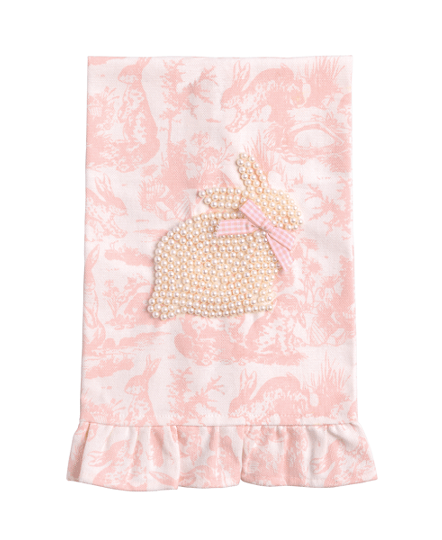 Charming, elegant, and delightfully detailed — these toile bunny pearl towels bring playful sophistication and seasonal flair to any space 🐇✨