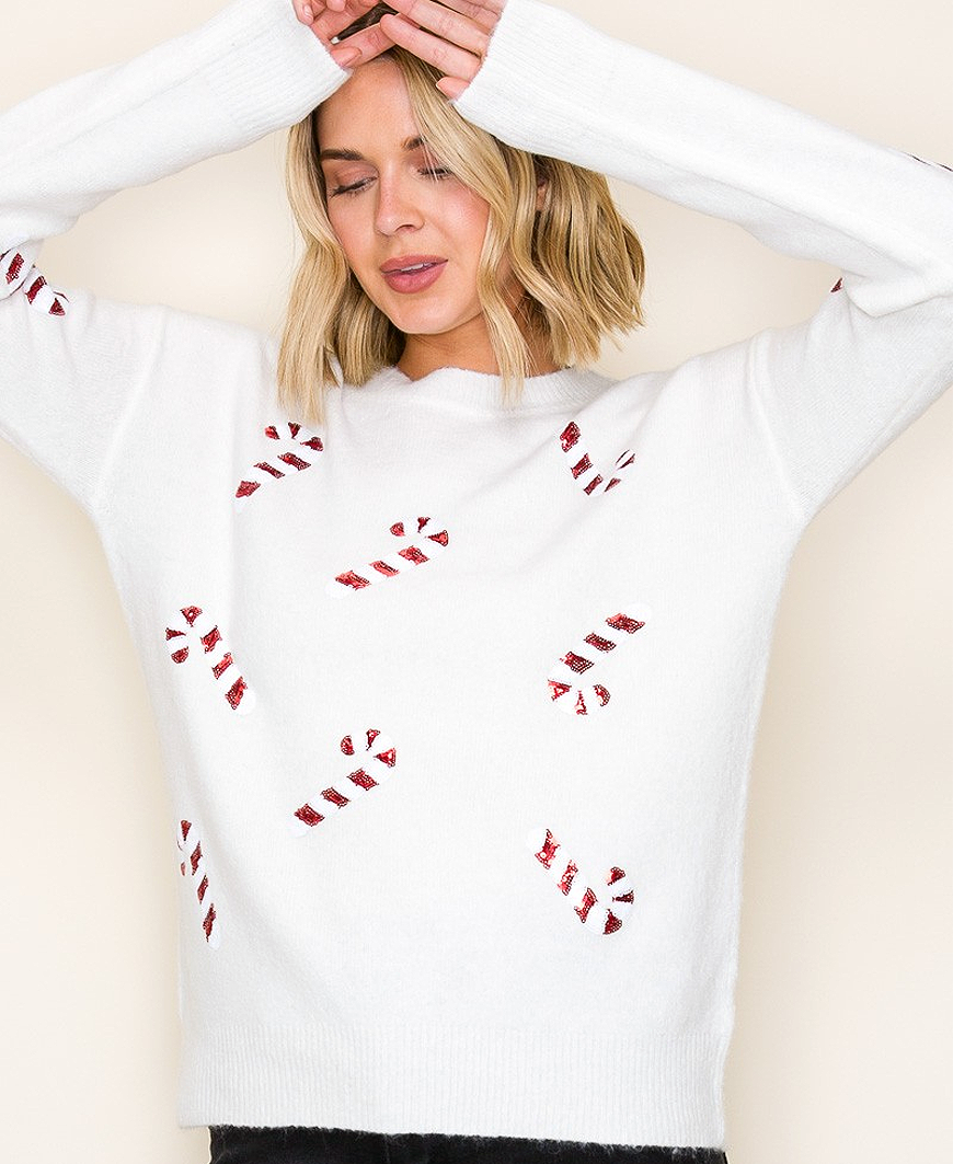 Regular price $49.95Xmas Sequin Candy Cane Sweater – Ivory
